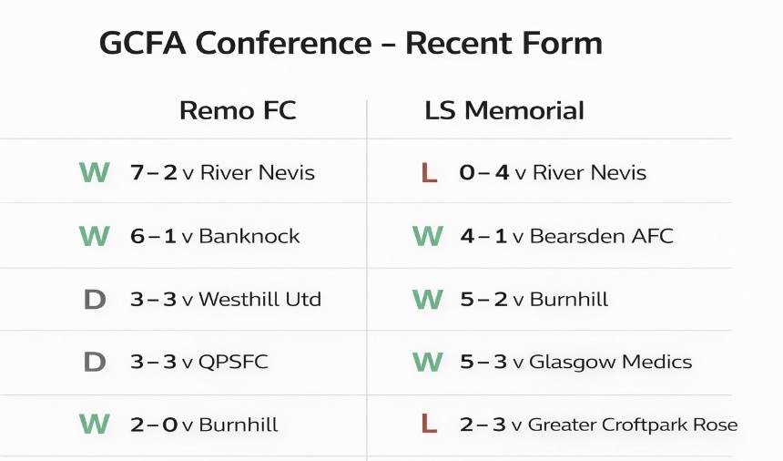 LS Memorial, meanwhile, find themselves in sixth position with 24 points from 18 games. Their campaign has been more inconsistent, reflected in a record of eight wins and ten defeats. While they have picked up positive results against Bearsden AFC and Burnhill, a recent loss to River Nevis highlighted the challenges they face against stronger opposition.