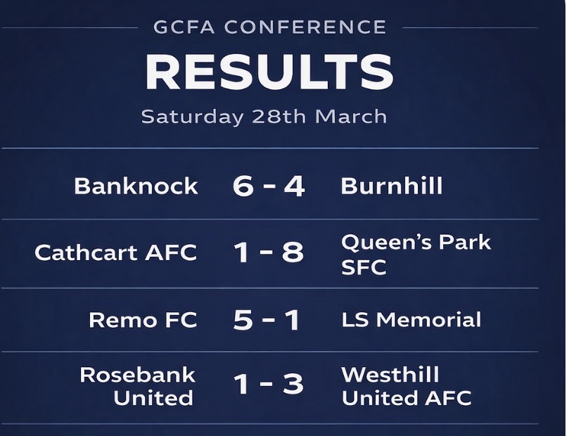 The biggest margin of the day came from Queen’s Park SFC, who dominated Cathcart AFC in an 8-1 demolition. The win helps Queen’s Park solidify their position in 7th, while Cathcart’s goal difference takes a significant hit.