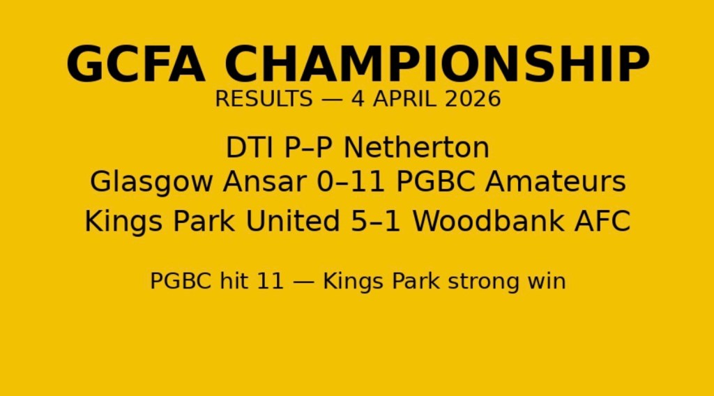 Biggest win: Glasgow Ansar 0–11 PGBC Amateurs Next highest: Kings Park 5–1 Woodbank One fixture: postponed