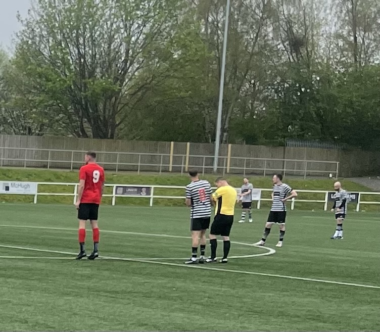 Shields was heavily involved at this point and he was given a yellow card for a bad challenge with Rutherglen claiming it should have been more.