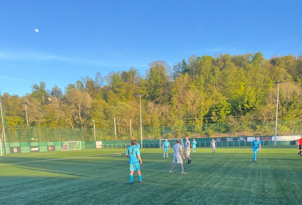 The warm and sunny conditions this evening down the Port were perfect for a game of football.